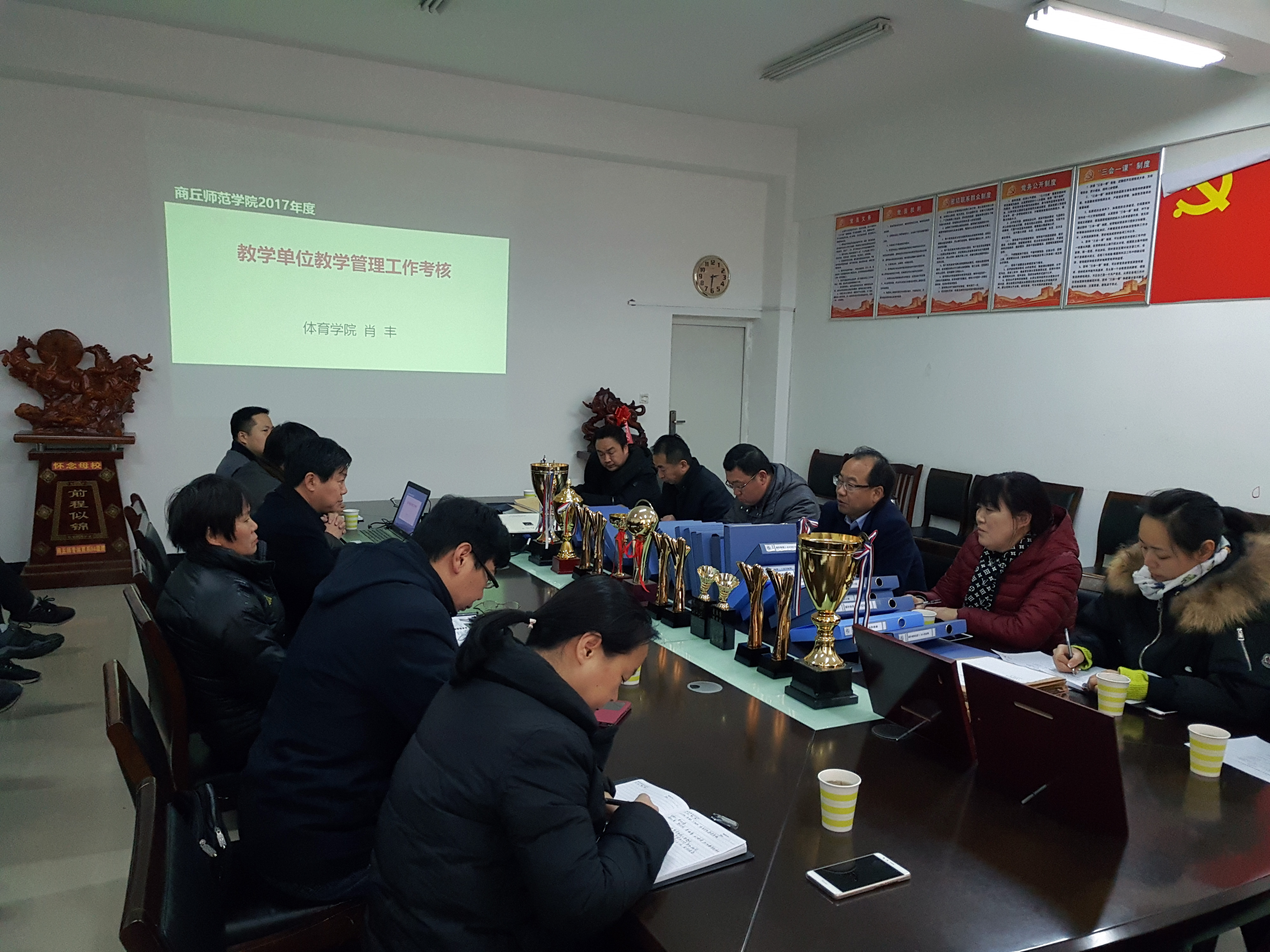 为进一步规范各学院教学管理工作,充分调动各学院教育教学管理工作的积极性和创造性,促进各学院之间相互学习、相互借鉴,形成竞争共进局面,全面提高教学管理水平和教育教学质量,根据《商丘师范学院教学单位教学管理工作考核办法(试行)》(院行字〔2017〕61 号)等相关规定,1月8日-9日,由校领导陈向炜、徐茂田、郭文佳和教务处、教师评价与教师发展中心、创新创业学院领导和学校教学督导、各学院教学院长组成专家团队,分3组深入19个教学学院,对其2017年度教学管理工作进行了年度考核。