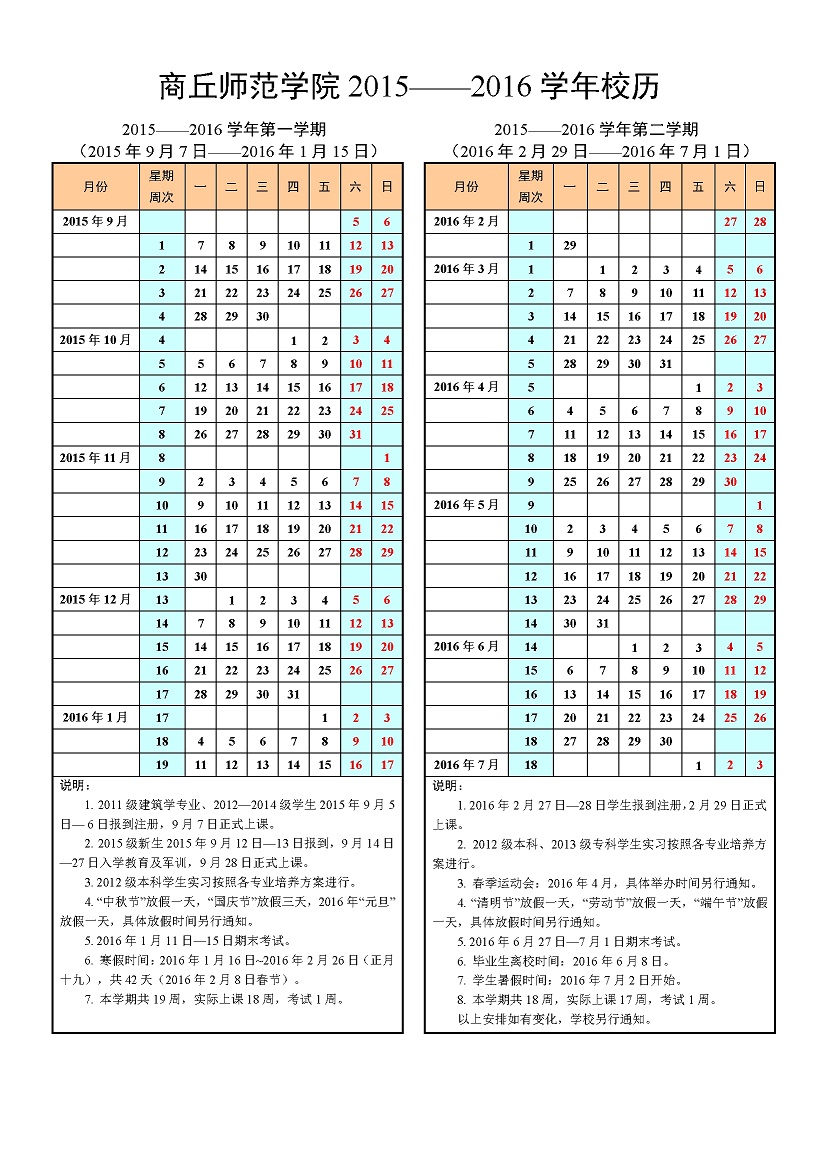 2015-2016学年校历